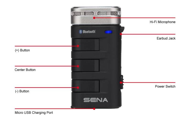 Sena Bluetooth Mic and IntercomTil bruk for å legge på stemme til videokamera. Samt Intercom ved bruk av ørepropp (alle merker)