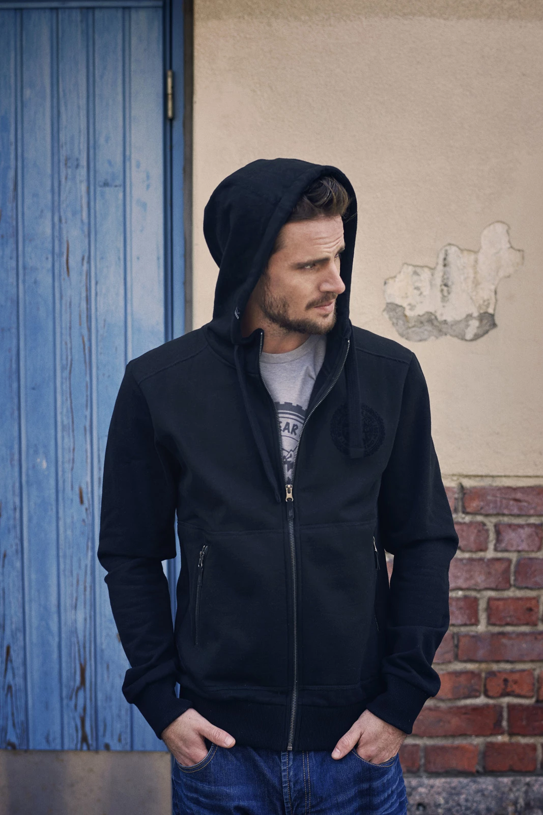 Hettejakke med glidelås og 2 lommer med glidelås.