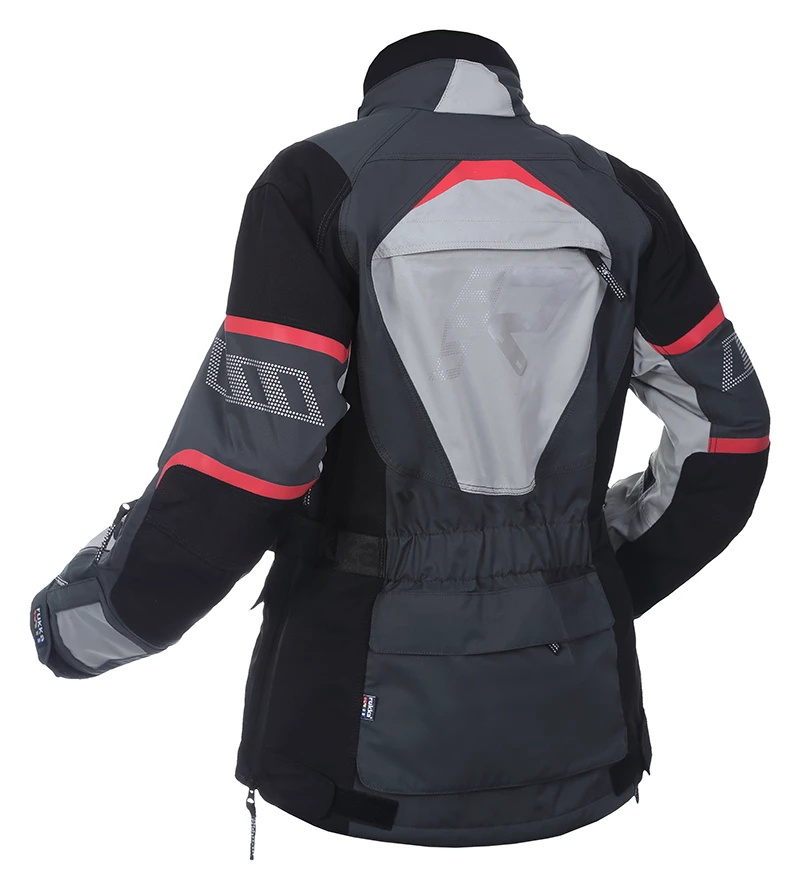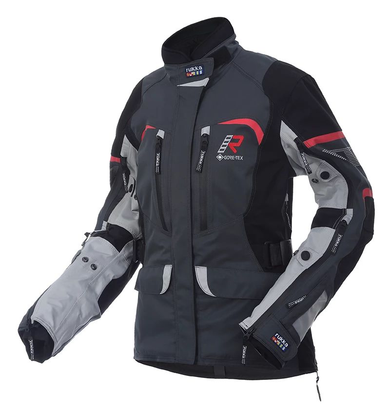 • Jakken er forberedt for Rukka D3O beskyttere med egne lommer til skuldre, albuer, bryst og rygg! Buksen har plass for beskyttere på knær/legg samt hofter.