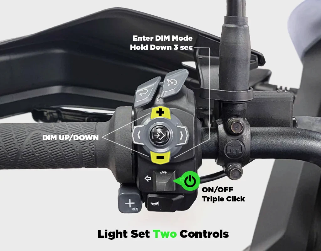 ON/OFF and Dim - Uavhengig kontroll av to sett ekstralys ved hjelp av de originale bryterne på motorsykkelen.